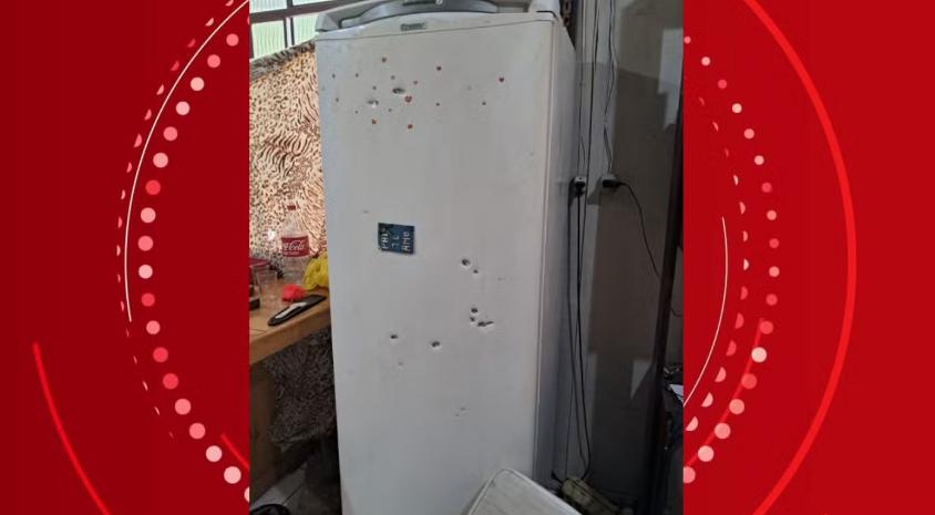 Geladeira ficou perfurada de balas